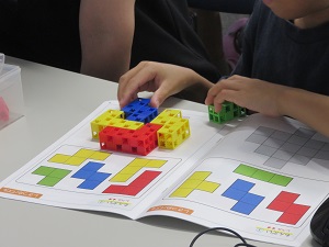 | 北欧フィンランドの幸運のお守りのヒンメリを作りました。ストローに糸を通して、立体的な三角形型やダイヤ型に組み立てていくのが少し難しかったですが、お互いに教えあいながらとてもにぎやかな雰囲気の中で、自分のペースで作品を仕上げました。 |