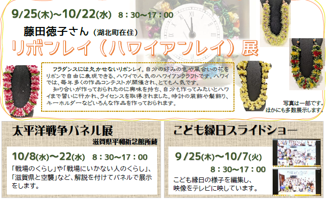 | 藤田徳子さん「リボンレイ(ハワイアンレイ)展 9/25~10/22 |