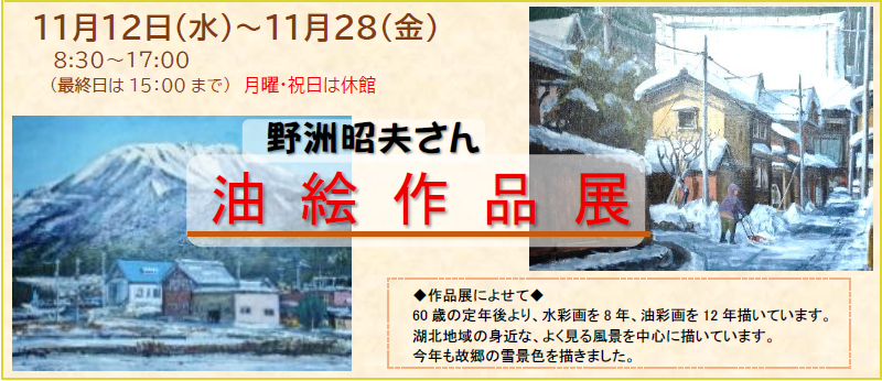 | 野洲昭夫さんさん「油絵作品展展 11/12~28 |