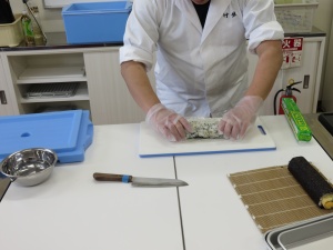| ホテルの料理長をされている山岡和宏先生を講師に、海鮮太巻き・裏巻き・手鞠寿しの三種の寿しを作りました。 すし酢・すし飯の作り方、巻く時の指使いなどを丁寧に、そして、 出来上りの海苔が破れないように巻き加減を教えていただきました。 講座後、参加者から活発な質問がありました。 当日夜には、みなさんご家庭で召し上がってくださったことと思います 。 |